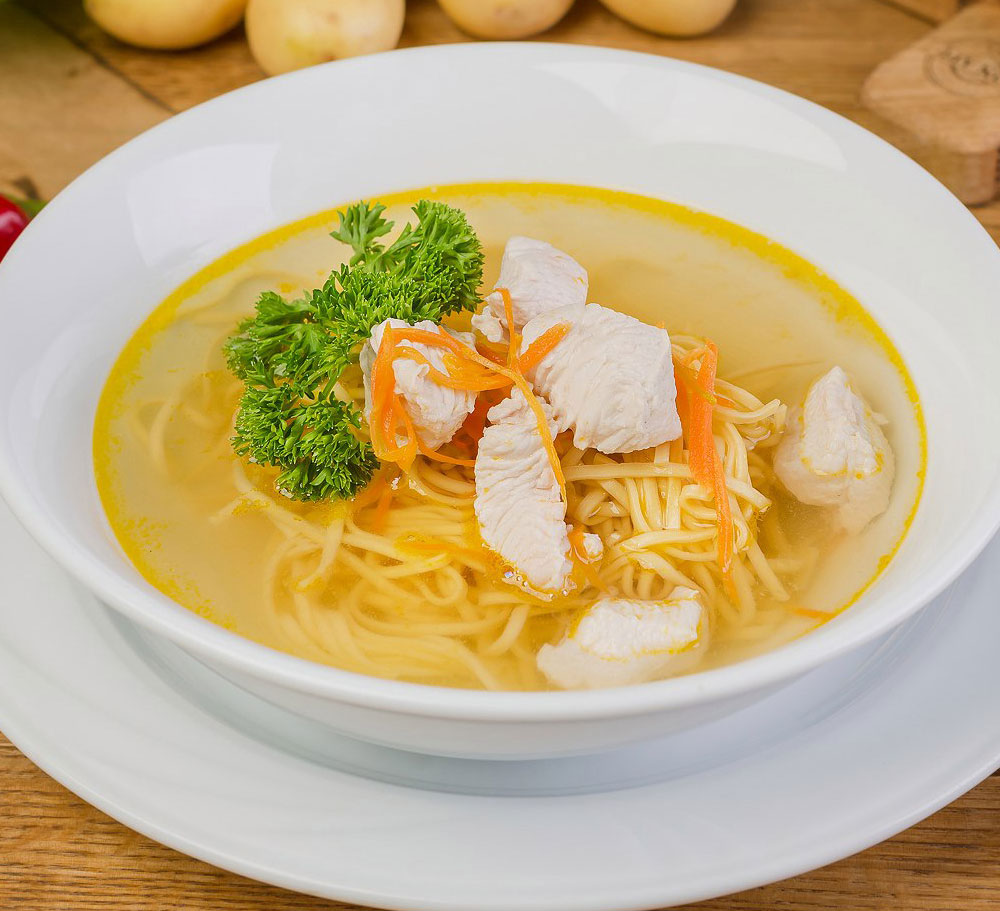 Лапша куриная Курятина, вермишель, лук, морковь, зелень. 300 г. Страй двор