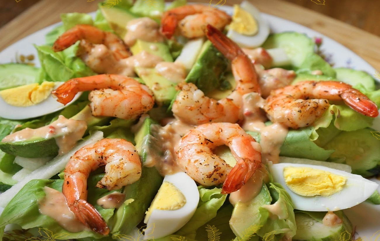 Салат старый двор Креветки, крабовые палочки, семга, огурцы, яйцо, имбирь, маслины. 200 г. Страй двор