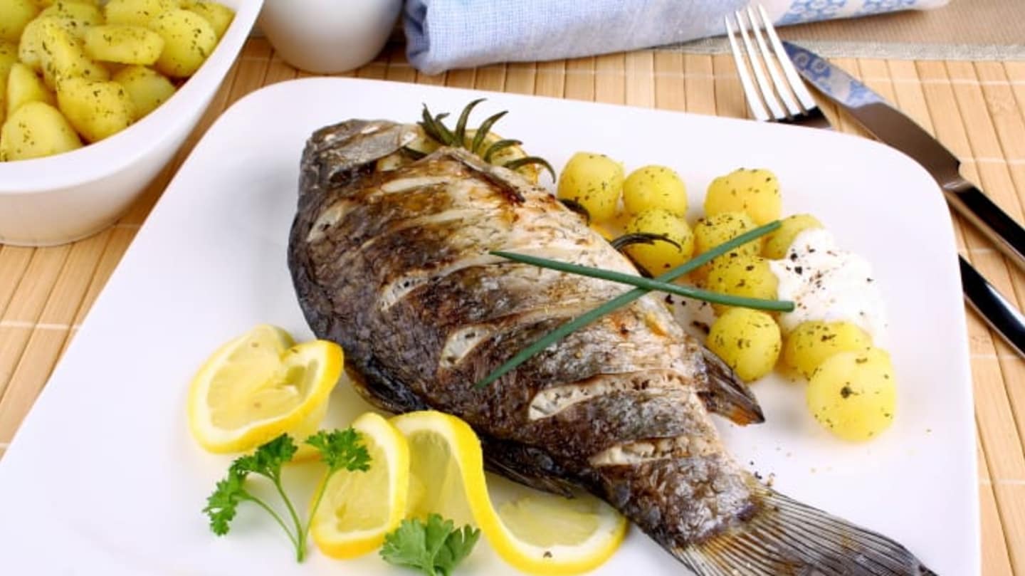 Сазан жаренный Сазан на углях, лимон, зелень. 300 гр. Страй двор