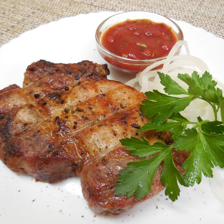 Шашлык из свиной корейки Свиная корейка, маринад, лук, зелень. 250 г. Страй двор