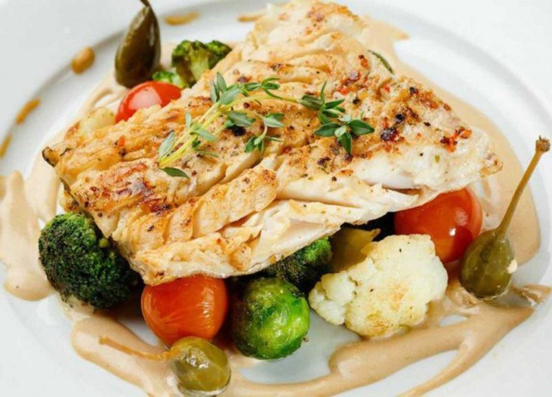 Треска на овощной подушке Треска, лук, морковь, перец, помидоры, чеснок, масло, специи, зелень, 300 гр. Страй двор